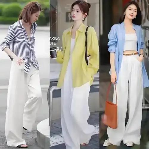 1. 衬衫+阔腿裤:白色雪纺衬衫宽松透气,将下摆塞进高腰黑色阔腿裤,瞬间拉长腿部线条。搭配黑色低跟穆勒鞋,佩戴细细的锁骨链与简约手表,无论是上班赶路还是会见客户,都显得利落且有气质。